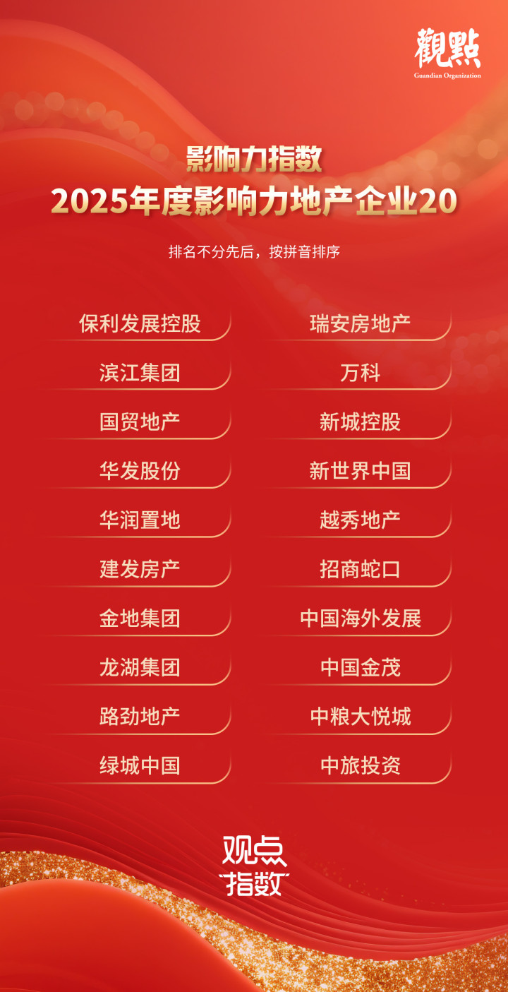 基于此,观点指数在深入洞察市场动态的同时,通过企业运营指标、储备与潜力等关键维度,对2025年度影响深远的地产企业进行全面甄选,致力于为行业树立标杆典范。